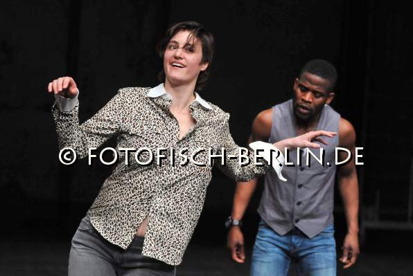 Ort: Sophiensaele Berlin. Gintersdorfer_Klassen. Titel: DESISTIEREN - Teil I, II und III. Premiere: 13.03.12 Im Bild: Teil III, Lena Wicke-Aengenheyster, Franck Edmond Yao