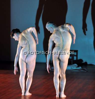Ort: Uferstudios Berlin. Tanzcompagnie Rubato. Titel: FindeOrte. Choreografie, Performance: Jutta Hell, Dieter Baumann. Lichtdesign: Jochen Massar. Urauffuehrung: 13.04.2012 Im Bild: Jutta Hell, Dieter Baumann