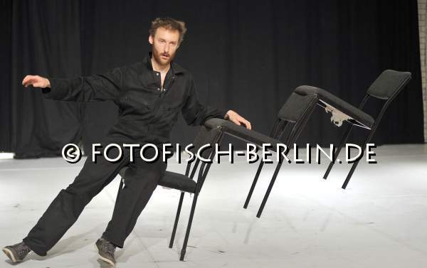 Ort: Uferstudios. TanzNacht Berlin 2012. Auff: 25.08.2012. Clement Layes. Titel: Der gruene Stuhl Choreografie: Clement Layes. Performance/Choreografie: Felix Marchand, Felix M. Ott Im Bild: Clement Layes