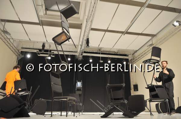 Ort: Uferstudios. TanzNacht Berlin 2012. Auff: 25.08.2012. Clement Layes. Titel: Der gruene Stuhl Choreografie: Clement Layes. Performance/Choreografie: Felix Marchand, Felix M. Ott Im Bild:Clement Layes, Felix Marchand