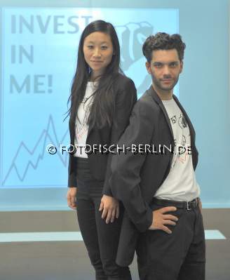 Ort: Sophiensaele. Freischwimmer 2012/13 - Verwerte Dich. Thom Truong. Titel: invest in me! Premiere: 30.10.2012 Konzept, Realisierung: Thom Truong (Thom Reinhard, Monika Truong). Social Entrepreneurs: Evelina Lundqvist, Mario Sinnhofer, Edmund Trollope. Im Bild: Thom Reinhard, Monika Truong