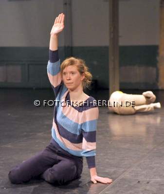 Ort: Sophiensaele. Tanztage Berlin 2013. 4.-14.1.2013. Antje Velsinger. Titel: AND THE BOAT GOES BACKWARDS. Premiere: 4.1.13 Konzept, Choreografie: Antje Verlsinger. Von und mit: Antje Velsinger, Lea Martini. Musik: Boris Hegenbart. Kostueme: Julia Laube Im Bild: Lea Martini, Antje Velsinger