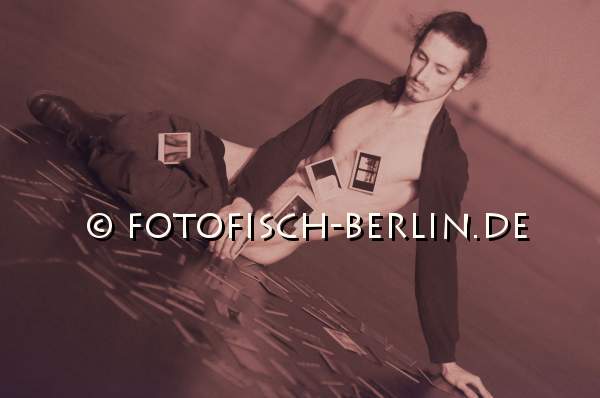 Ort: Sophiensaele. Tanztage Berlin 2013. 4.-14.1.2013. Marcio Canabarro. Titel: AUGURY OF AWRY SKY. Premiere: 10.1.13 Kreation, Performance: Marcio Kerber Canabarro, Michiel Keuper. Kostuem, Buehne: Michiel Keuper. Im Bild: Marcio Canabarro