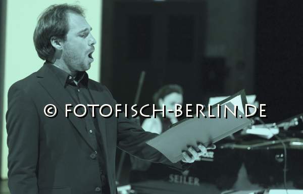 Ort: Sophiensaele Berlin. Patrick Frank. Titel: WIR SIND AUSSERGEWOEHNLICH...NACH DEM "ANYTHING GOES" Konzept, Komposition, Projektleitung: Patrick Frank. Tenor: Jakob Pilgram. Klavier: Judit Polgar. Philosoph: Prof. Enno Rudolph. Buehne: Michel Schranz. Licht: Markus Brunn. Video: David Rittershaus Im Bild: Jakob Pilgram, Judit Polgar