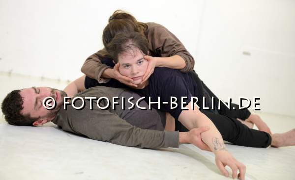 Ort: Sophiensaele. Premiere: 7.2.2013 Angela Schubot, Jared Gradinger, Aleesa Cohene Titel: LES PETITES MORTS_ALL MY HOLES ARE THEIRS Choreografie, Performance: Aleesa Cohene, Jared Gradinger, Angela Schubot. Musik: Tian Rotteveel. Licht: Andreas Harder. Im Bild: Angela Schubot, Jared Gradinger, Aleesa Cohene
