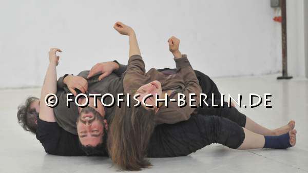 Ort: Sophiensaele. Premiere: 7.2.2013 Angela Schubot, Jared Gradinger, Aleesa Cohene Titel: LES PETITES MORTS_ALL MY HOLES ARE THEIRS Choreografie, Performance: Aleesa Cohene, Jared Gradinger, Angela Schubot. Musik: Tian Rotteveel. Licht: Andreas Harder. Im Bild: Angela Schubot, Jared Gradinger, Aleesa Cohene