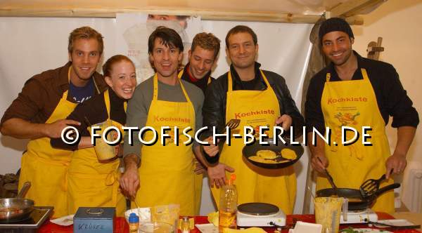 Foto: Dominic Boeer (Gute Zeiten Schlechte Zeiten), Kaya Möller, Roman rossa, Leander Modersohn, Björn Casapietra, Anton Noure, v.l.n.r.(alle Telenovela JULIA) backen für die Welthungerhilfe.