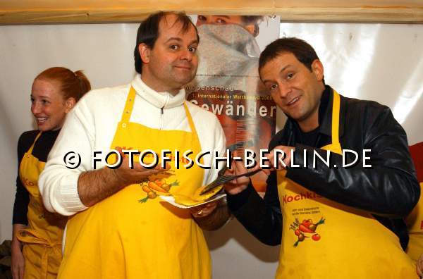 Promis backen auf dem Textilhandwerksmarkt der Domäne Dahlem in Berlin für die Welthungerhilfe.