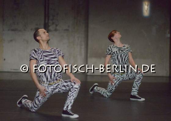 Ort: Sophiensaele. LUCKY TRIMMER_Tanz Performance Serie. 05.+06.04.2013 HARTMANNMUELLER. Titel: die galactik twins. Choreografie, Performance: Simon Hartmann, Daniel Ernesto Mueller. Kostuem: Versace Im Bild: Simon Hartmann, Daniel Ernesto Mueller