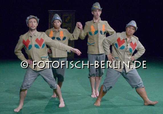 Tanz im August 2013. 17.-31.8.2013 Ort: Sophiensaele. Jochen Roller. Titel: Trachtenbummler. UA: 27.08.2013. Kuenstlerische Leitung: Jochen Roller. Trachten: Daniel Kroh. Mit: Joavien Ng, Edouard Pelleray, Ahilan Bhuvanendra Ratnamohan, Jochen Roller, Magali Sander-Fett, Latai Funaki Taumoepeau