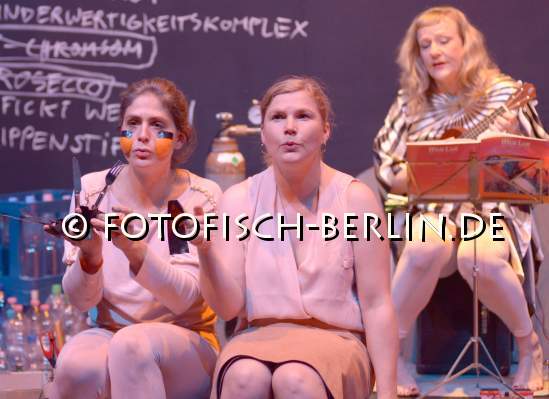 Ort: Hebbel am Ufer, hau 3. SHE SHE POP Titel: ENDE. Premiere: 8.10.2013. Konzept: She She Pop. Von und mit: Sebastian Bark (Adam), Lisa Lucassen (Engel), Mieke Matzke (Gott), Ilia Papatheodorou (Eva). Buehne, Kostuem: Sandra Fox, SSP.