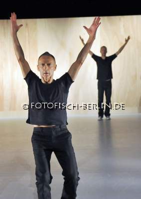 Ort: EDEN.....Berlin. Tanzcompagnie Rubato. Titel: ACT. Urauffuehrung: 18.10.2013. Konzept: Jutta Hell, Dieter Baumann. Choreografie: Jutta Hell. Raum, Kostuem: Jutta Hell. Licht: Jochen Masar. Musik: DaBao. Tanz, Choreografie: Dieter Baumann, Fernando Nicolas Pelliccioli, Carlos Osatinsky. Im Bild: Dieter Baumann, Carlos Osatinsky.