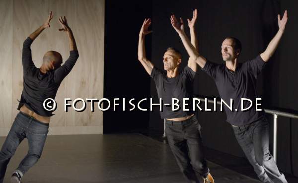 Ort: EDEN.....Berlin. Tanzcompagnie Rubato. Titel: ACT. Urauffuehrung: 18.10.2013. Konzept: Jutta Hell, Dieter Baumann. Choreografie: Jutta Hell. Raum, Kostuem: Jutta Hell. Licht: Jochen Masar. Musik: DaBao. Tanz, Choreografie: Dieter Baumann, Fernando Nicolas Pelliccioli, Carlos Osatinsky. Im Bild: Dieter Baumann, Fernando Nicolas Pelliccioli, Carlos Osatinsky.