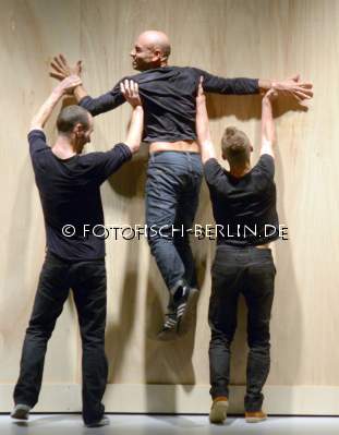 Ort: EDEN.....Berlin. Tanzcompagnie Rubato. Titel: ACT. Urauffuehrung: 18.10.2013. Konzept: Jutta Hell, Dieter Baumann. Choreografie: Jutta Hell. Raum, Kostuem: Jutta Hell. Licht: Jochen Masar. Musik: DaBao. Tanz, Choreografie: Dieter Baumann, Fernando Nicolas Pelliccioli, Carlos Osatinsky. Im Bild: Dieter Baumann, Fernando Nicolas Pelliccioli, Carlos Osatinsky.
