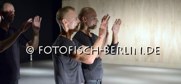 Ort: EDEN.....Berlin. Tanzcompagnie Rubato. Titel: ACT. Urauffuehrung: 18.10.2013. Konzept: Jutta Hell, Dieter Baumann. Choreografie: Jutta Hell. Raum, Kostuem: Jutta Hell. Licht: Jochen Masar. Musik: DaBao. Tanz, Choreografie: Dieter Baumann, Fernando Nicolas Pelliccioli, Carlos Osatinsky. Im Bild: Dieter Baumann, Fernando Nicolas Pelliccioli, Carlos Osatinsky.