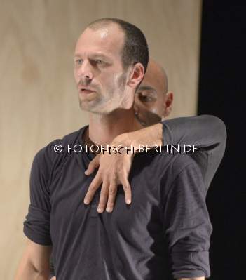 Ort: EDEN.....Berlin. Tanzcompagnie Rubato. Titel: ACT. Urauffuehrung: 18.10.2013. Konzept: Jutta Hell, Dieter Baumann. Choreografie: Jutta Hell. Raum, Kostuem: Jutta Hell. Licht: Jochen Masar. Musik: DaBao. Tanz, Choreografie: Dieter Baumann, Fernando Nicolas Pelliccioli, Carlos Osatinsky.