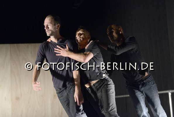 Ort: EDEN.....Berlin. Tanzcompagnie Rubato. Titel: ACT. Urauffuehrung: 18.10.2013. Konzept: Jutta Hell, Dieter Baumann. Choreografie: Jutta Hell. Raum, Kostuem: Jutta Hell. Licht: Jochen Masar. Musik: DaBao. Tanz, Choreografie: Dieter Baumann, Fernando Nicolas Pelliccioli, Carlos Osatinsky. Im Bild: Dieter Baumann, Fernando Nicolas Pelliccioli, Carlos Osatinsky.