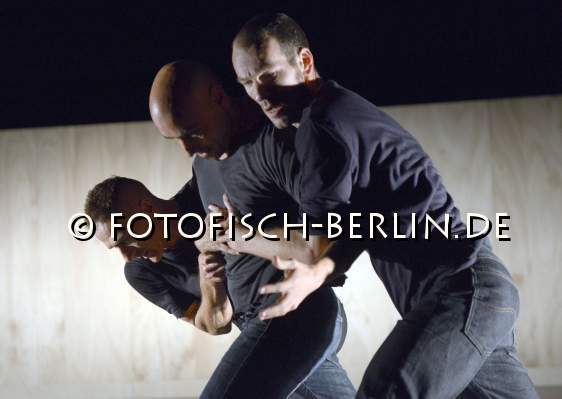 Ort: EDEN.....Berlin. Tanzcompagnie Rubato. Titel: ACT. Urauffuehrung: 18.10.2013. Konzept: Jutta Hell, Dieter Baumann. Choreografie: Jutta Hell. Raum, Kostuem: Jutta Hell. Licht: Jochen Masar. Musik: DaBao. Tanz, Choreografie: Dieter Baumann, Fernando Nicolas Pelliccioli, Carlos Osatinsky. Im Bild: Dieter Baumann, Fernando Nicolas Pelliccioli, Carlos Osatinsky.