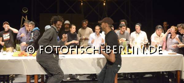 Ort: Hebbel am Ufer, hau 2. God´s Entertainment Titel: Cleaning, babysitting, I help in the house_7 Euro. Premiere: 18.12.2013. Produktionsleitung: Leonie Kusterer. Licht: Sebastian Zamponi Produktion: God`s Entertainment Im Bild: God`s Entertainment