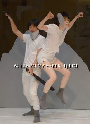 Festival: Tanztage Berlin 2014. 04.-14.01.2014. Ort: Sophiensaele. JEE-AE LIM. Titel: NEW MONSTER. Premiere: 13.01.2014 Choreografie: Jee-Ae Lim. Licht: Jae-Euk Kim. Buehne: Jong-Seok Kim, Go-Ya Choi. Musik: Tian Rotteveel, Kyan Baani. Performance: Young-Ho Kwon, Soo-Hyun Hwang, Jee-Ae Lim Im Bild: Young-Ho Kwon, Soo-Hyun Hwang