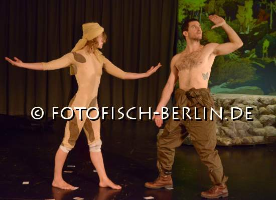 Ort: Sophiensaele. Santiago Blaum. Titel: Die Geschichte vom Soldaten Elik. Premiere: 31.01.2014 . Inszenierung: Santiago Blaum. Choreografie: Johanna Lemke. Musik: Joe Howe, Santiago Blaum. Buehne, Kostueme: Cristina Nyffeler. Licht: Benjamin Schaelike. Von und mit: Elik Niv, Johanna Lemke, Tatiana Saphir, Eva Loebau. Im Bild: Elik Niv, Johanna Lemke