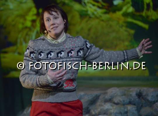 Ort: Sophiensaele. Santiago Blaum. Titel: Die Geschichte vom Soldaten Elik. Premiere: 31.01.2014 . Inszenierung: Santiago Blaum. Choreografie: Johanna Lemke. Musik: Joe Howe, Santiago Blaum. Buehne, Kostueme: Cristina Nyffeler. Licht: Benjamin Schaelike. Von und mit: Elik Niv, Johanna Lemke, Tatiana Saphir, Eva Loebau. Im Bild: Eva Loebau