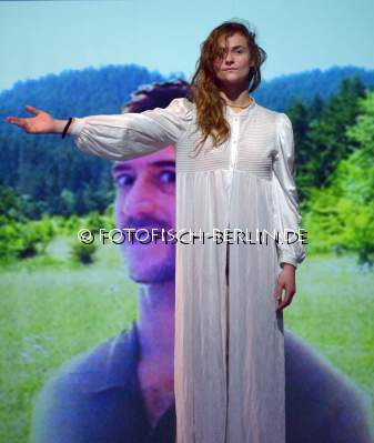 Ort: Sophiensaele. Santiago Blaum. Titel: Die Geschichte vom Soldaten Elik. Premiere: 31.01.2014 . Inszenierung: Santiago Blaum. Choreografie: Johanna Lemke. Musik: Joe Howe, Santiago Blaum. Buehne, Kostueme: Cristina Nyffeler. Licht: Benjamin Schaelike. Von und mit: Elik Niv, Johanna Lemke, Tatiana Saphir, Eva Loebau. Im Bild: Johanna Lemke