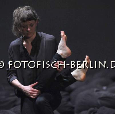 Ort: Uferstudios. Isabelle Schad. Titel: DER BAU - Gruppe 12x60. Premiere: 6.2.2014. Konzept, Choreografie: Isabelle Schad. Kuenstlerische Zusammenarbeit: Sasa Bozic, Laurent Goldring. Lichtdesign: Mehdi Toutain-Lopez. Sound: Marcello Busato. Kostueme: Marion Montel. Tanz / Performance: Ivaylo Dimitrov, Hana Erdman, Jasmin Ihrac, Przemyslaw Kaminski, Roni Katz, Nina Kurtela, Diethild Meier, Lea Moro, Benjamin Pohlig, David Pollmann, Anna Posch, Sonja Pregrad Im Bild: Szenenfoto_Der Bau_Gruppe 12x60