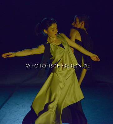 Ort: Studio laborgras. Titel: Retour (was waere wenn...) Ein Projekt von labrogras. Premiere: 27.02.2014. Idee, Choreografie: Renate Graziadei, Arthur Staeldi. Performance: Maria Giulia Serantoni, Renate Graziadei. Live Music: Phoebe Killdeer. Kostuem: Chantal Margiotta. Licht: Lutz Deppe. Im Bild: Maria Giulia Serantoni, Renate Graziadei