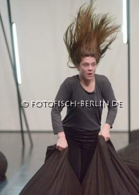 Ort: Uferstudios. Isabelle Schad. Titel: Form und Masse. Premiere: 13.03.2014 Konzept, Choreografie: Isabelle Schad. Co-Choreografie und Performance: Sonja Pregrad. Komposition & Sound: Marcello Busato. Lichtinstallation: Florian Bach Im Bild: Sonja Pregrad