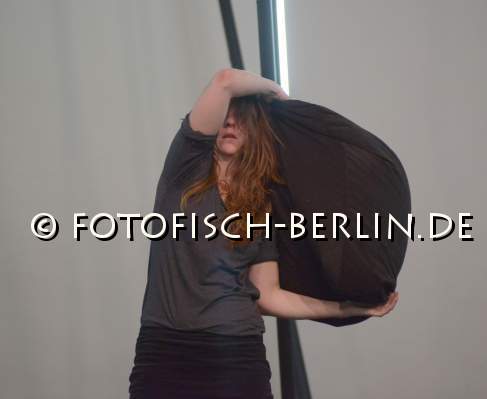 Ort: Uferstudios. Isabelle Schad. Titel: Form und Masse. Premiere: 13.03.2014 Konzept, Choreografie: Isabelle Schad. Co-Choreografie und Performance: Sonja Pregrad. Komposition & Sound: Marcello Busato. Lichtinstallation: Florian Bach Im Bild: Sonja Pregrad