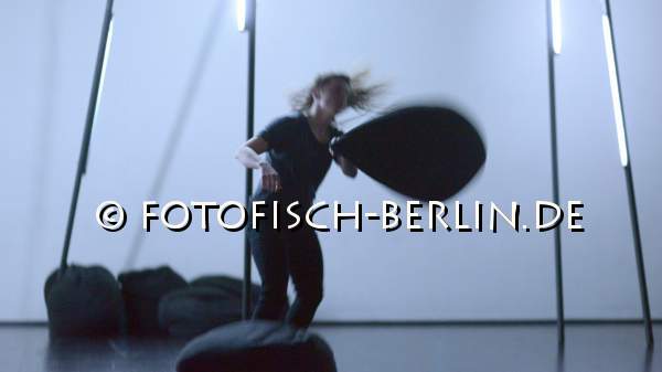 Ort: Uferstudios. Isabelle Schad. Titel: Form und Masse. Premiere: 13.03.2014 Konzept, Choreografie: Isabelle Schad. Co-Choreografie und Performance: Sonja Pregrad. Komposition & Sound: Marcello Busato. Lichtinstallation: Florian Bach Im Bild: Sonja Pregrad