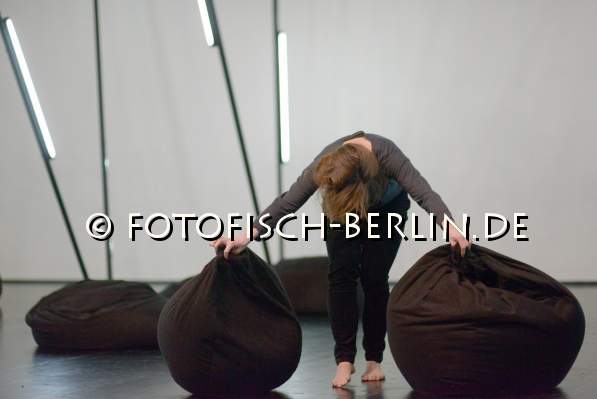 Ort: Uferstudios. Isabelle Schad. Titel: Form und Masse. Premiere: 13.03.2014 Konzept, Choreografie: Isabelle Schad. Co-Choreografie und Performance: Sonja Pregrad. Komposition & Sound: Marcello Busato. Lichtinstallation: Florian Bach Im Bild: Sonja Pregrad