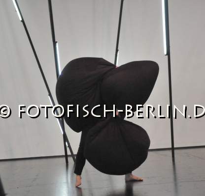Ort: Uferstudios. Isabelle Schad. Titel: Form und Masse. Premiere: 13.03.2014 Konzept, Choreografie: Isabelle Schad. Co-Choreografie und Performance: Sonja Pregrad. Komposition & Sound: Marcello Busato. Lichtinstallation: Florian Bach Im Bild: Sonja Pregrad