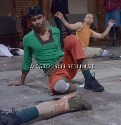 Ort: St. Johannes-Evangelist Kirche. DIN A 13 tanzcompany Titel: Tranz_flexion. Multimediale performative (Tanz)- Installation. Urauffuehrung: 16.04.2014. Choreografie: Gerda Koenig. Videokuenstler: Vishnu Vasu, Leon Grauer, Daniel Landau. Musik: Harsha Makalande, Xavier Losanda, Nimrod Gorovich. Kostueme: Nikita Deana, Juan Carlos Vivas, Rozi Canan. Licht: Gerd Weidig. Tanz: Ensemble DIN A 13 tanzcompany Im Bild: Ensemble DIN A 13 tanzcompany
