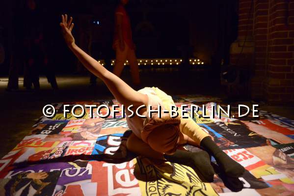 Ort: St. Johannes-Evangelist Kirche. DIN A 13 tanzcompany Titel: Tranz_flexion. Multimediale performative (Tanz)- Installation. Urauffuehrung: 16.04.2014. Choreografie: Gerda Koenig. Videokuenstler: Vishnu Vasu, Leon Grauer, Daniel Landau. Musik: Harsha Makalande, Xavier Losanda, Nimrod Gorovich. Kostueme: Nikita Deana, Juan Carlos Vivas, Rozi Canan. Licht: Gerd Weidig. Tanz: Ensemble DIN A 13 tanzcompany Im Bild: Ensemble DIN A 13 tanzcompany