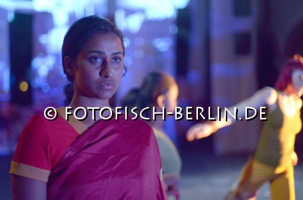 Ort: St. Johannes-Evangelist Kirche. DIN A 13 tanzcompany Titel: Tranz_flexion. Multimediale performative (Tanz)- Installation. Urauffuehrung: 16.04.2014. Choreografie: Gerda Koenig. Videokuenstler: Vishnu Vasu, Leon Grauer, Daniel Landau. Musik: Harsha Makalande, Xavier Losanda, Nimrod Gorovich. Kostueme: Nikita Deana, Juan Carlos Vivas, Rozi Canan. Licht: Gerd Weidig. Tanz: Ensemble DIN A 13 tanzcompany Im Bild: Ensemble DIN A 13 tanzcompany