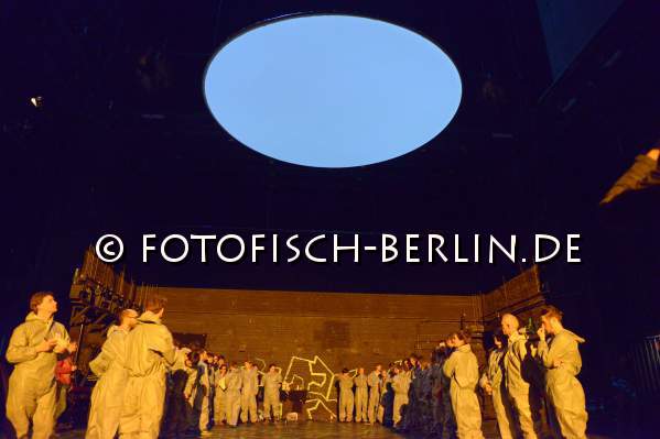 Ort: Hebbel am Ufer, hau 1. Invisible Playground & Andromeda Mega Express Orchestra. DROHNENMAERCHEN. Ein Spiel für 80 Menschen, 18 Musiker und echte Drohnen. Premiere: 15.5.2014 Konzeption, Game Design: Invisible Playground, Friedrich Kirschner. Game Polishing: Daniel Boy. Buehne, Kostueme: Anna Hentschel. Musik: Andromeda Mega Express Orchestra. Im Bild: Publikum in Aktion