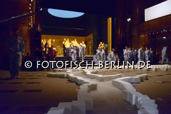 Ort: Hebbel am Ufer, hau 1. Invisible Playground & Andromeda Mega Express Orchestra. DROHNENMAERCHEN. Ein Spiel für 80 Menschen, 18 Musiker und echte Drohnen. Premiere: 15.5.2014 Konzeption, Game Design: Invisible Playground, Friedrich Kirschner. Game Polishing: Daniel Boy. Buehne, Kostueme: Anna Hentschel. Musik: Andromeda Mega Express Orchestra. Im Bild: Publikum in Aktion