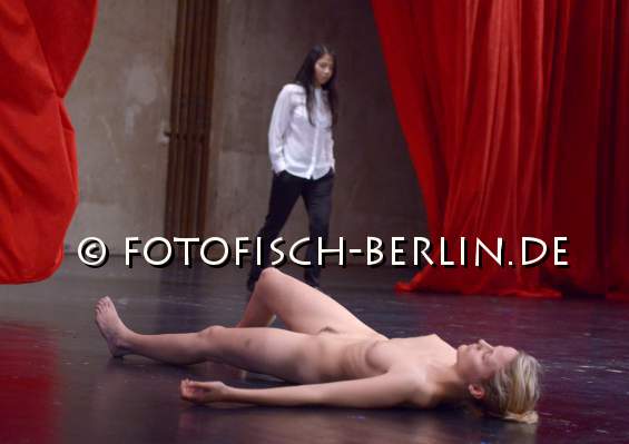 Ort: Sophiensaele. Margret Sara Gudjonsdottir, Angela Schubot. Titel: BLIND SPOTTING. Premiere: 12.06.2014 Konzept: Margret Sara Gudjonsdottir, Angela Schubot. Regie, Buehne, Kostueme, Choreografie: Margret Sara Gudjonsdottir. Choreografie, Performance: Louise Dahl, Annie Kay Dahlström, Catherine Jodoin, Angela Schubot, Laura Siegmund, Suet-Wan Tsang, Marie Ursin, Rodrigo Vilarinho Im Bild: Louise Dahl, Suet-Wang Tsang