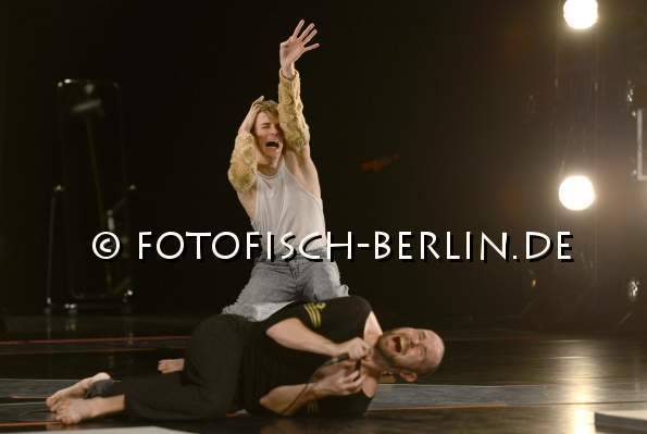 Tanz im August 2014. Ort: Hebbel am Ufer, hau 1. Trajal Harrell. Titel: Antigone Sr. -Deutschlandpremiere. Choreograph: Trajal Harrell. Buehne: Erik Flatmo. Licht: Jan Maertens. Taenzer: Trajal Harrell, Stephen Thompson, Thibault Lac, Rob Fordeyn, Ondrej Vidlar. Im Bild: Thibault Lac, Ondrej Vidlar