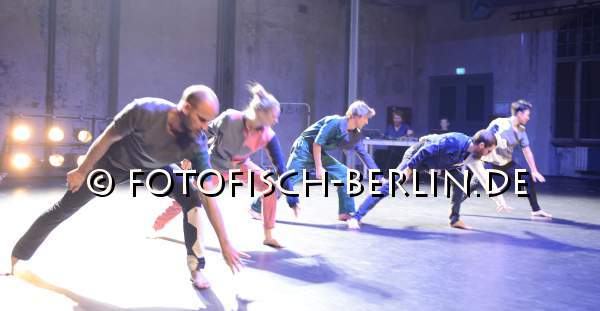 Ort: Sophiensaele. Martin Nachbar. Titel: THINGAMAJIG. Premiere: 02.10.2014. Kuenstlerische Leitung: Martin Nachbar. Musik: Boris Hauf. Kostueme: Marion Montel. Licht: Bruno Pocheron. Tanz, Choreografie: Philipp Enders, Coralie Meinquet, Benjamin Pohlig, Martin Nachbar (Jochen Roller), Sunniva Vikor Egenes. Im Bild: Ensemble