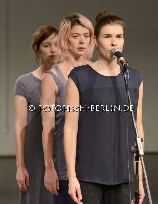 Ort: Sophiensaele. BIGNOTWENDIGKEIT+LASZLO FUELOEP+NANASTROVA Titel: HYSTEROLOGY. Premiere: 08.10.2014. Von und mit: Anna K. Becker, Anna Biczok, Katharina Bischoff, Alice Ferl, Laszlo Fueloep. Im Bild: Anna K. Becker, Anna Biczok, Katharina Bischoff
