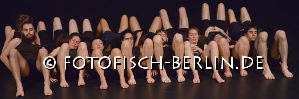 Ort: Hebbel am Ufer, hau 2. Isabelle Schad. Titel: COLLECTIVE JUMPS. Premiere: 28.11.2014 Konzept, Choreographie: Isabelle Schad, Laurent Goldring. Licht: Mehdi Toutain-Lopez. Kostueme: Lea Girod. Performance, Tanz: Juan Cobeis, Hana Erdman, Naima Ferre, Jasmin Ihrac, Przemyslaw Kaminski, Roni Katz, Mathis Kleinschnittger, Inna Krasnoper, Aoife McAtamney, Zwoisy Mears-Clarke, Lea Moro, Benjamin Pohlig, Julia Rodriguez, Claudia Tomasi, Nir Vidan, Sunniva Vikor Egenes. Im Bild: Ensemble