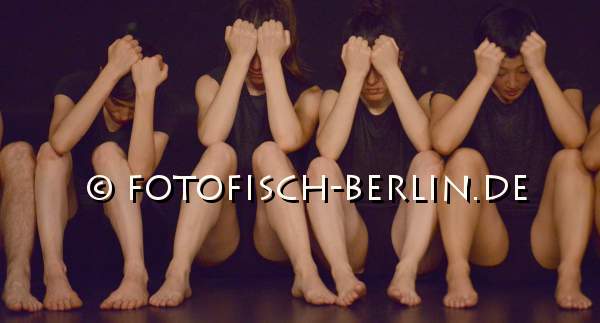 Ort: Hebbel am Ufer, hau 2. Isabelle Schad. Titel: COLLECTIVE JUMPS. Premiere: 28.11.2014 Konzept, Choreographie: Isabelle Schad, Laurent Goldring. Licht: Mehdi Toutain-Lopez. Kostueme: Lea Girod. Performance, Tanz: Juan Cobeis, Hana Erdman, Naima Ferre, Jasmin Ihrac, Przemyslaw Kaminski, Roni Katz, Mathis Kleinschnittger, Inna Krasnoper, Aoife McAtamney, Zwoisy Mears-Clarke, Lea Moro, Benjamin Pohlig, Julia Rodriguez, Claudia Tomasi, Nir Vidan, Sunniva Vikor Egenes. Im Bild: Ensemble