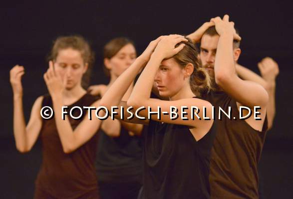 Ort: Hebbel am Ufer, hau 2. Isabelle Schad. Titel: COLLECTIVE JUMPS. Premiere: 28.11.2014 Konzept, Choreographie: Isabelle Schad, Laurent Goldring. Licht: Mehdi Toutain-Lopez. Kostueme: Lea Girod. Performance, Tanz: Juan Cobeis, Hana Erdman, Naima Ferre, Jasmin Ihrac, Przemyslaw Kaminski, Roni Katz, Mathis Kleinschnittger, Inna Krasnoper, Aoife McAtamney, Zwoisy Mears-Clarke, Lea Moro, Benjamin Pohlig, Julia Rodriguez, Claudia Tomasi, Nir Vidan, Sunniva Vikor Egenes. Im Bild: Ensemble