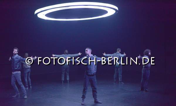 Ort: Hebbel am Ufer, hau 2. Kat Valastur. Titel: Ah! Oh! A Contemporary Ritual. Premiere: 5.12.2014. Konzept, Choreografie: Kat Valastur. Licht: Martin Beeretz. Kostueme: Lydia Sonderegger. Tanz: Sahar Levi, Leyla Postalcioglu, Annegret Schalke, Romain Thibaud-Rose, Enrico Ticconi, Marysia Zimpel Im Bild: Ensemble