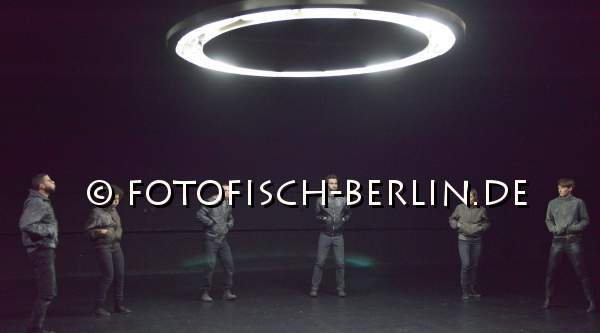 Ort: Hebbel am Ufer, hau 2. Kat Valastur. Titel: Ah! Oh! A Contemporary Ritual. Premiere: 5.12.2014. Konzept, Choreografie: Kat Valastur. Licht: Martin Beeretz. Kostueme: Lydia Sonderegger. Tanz: Sahar Levi, Leyla Postalcioglu, Annegret Schalke, Romain Thibaud-Rose, Enrico Ticconi, Marysia Zimpel Im Bild: Ensemble