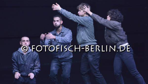 Ort: Hebbel am Ufer, hau 2. Kat Valastur. Titel: Ah! Oh! A Contemporary Ritual. Premiere: 5.12.2014. Konzept, Choreografie: Kat Valastur. Licht: Martin Beeretz. Kostueme: Lydia Sonderegger. Tanz: Sahar Levi, Leyla Postalcioglu, Annegret Schalke, Romain Thibaud-Rose, Enrico Ticconi, Marysia Zimpel Im Bild: Ensemble