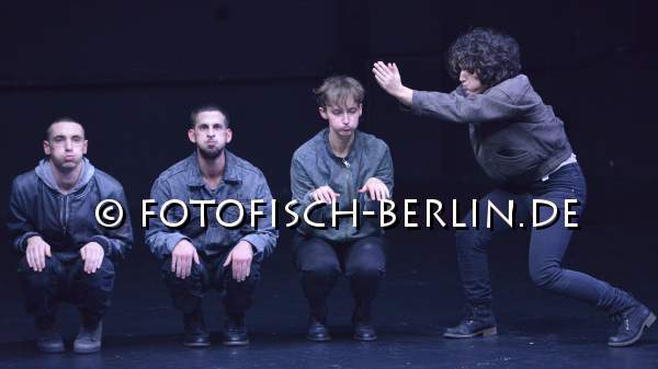 Ort: Hebbel am Ufer, hau 2. Kat Valastur. Titel: Ah! Oh! A Contemporary Ritual. Premiere: 5.12.2014. Konzept, Choreografie: Kat Valastur. Licht: Martin Beeretz. Kostueme: Lydia Sonderegger. Tanz: Sahar Levi, Leyla Postalcioglu, Annegret Schalke, Romain Thibaud-Rose, Enrico Ticconi, Marysia Zimpel Im Bild: Ensemble